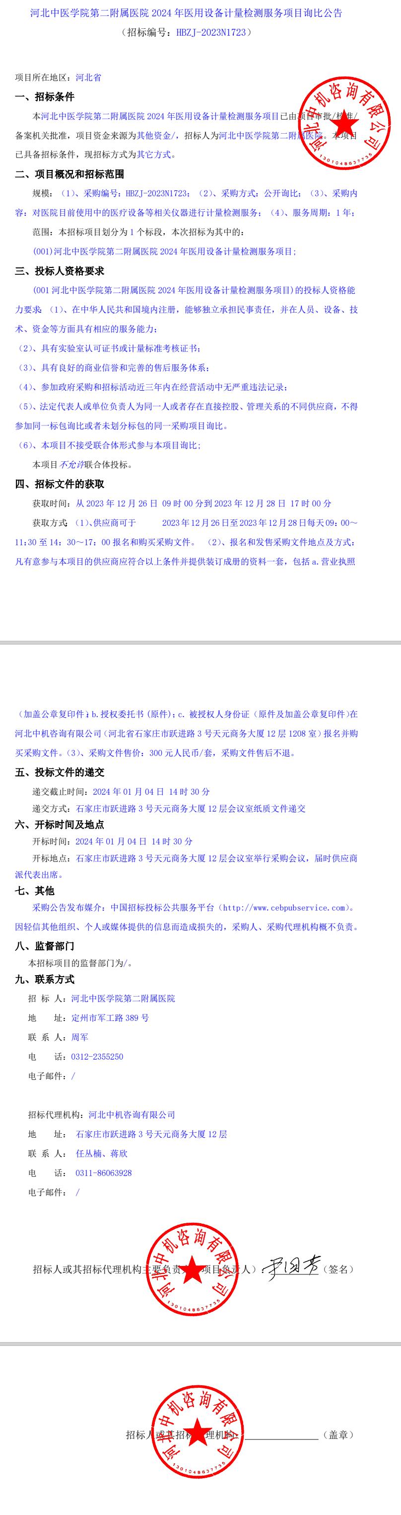 2024年医用设备计量检测服务项目询比公告