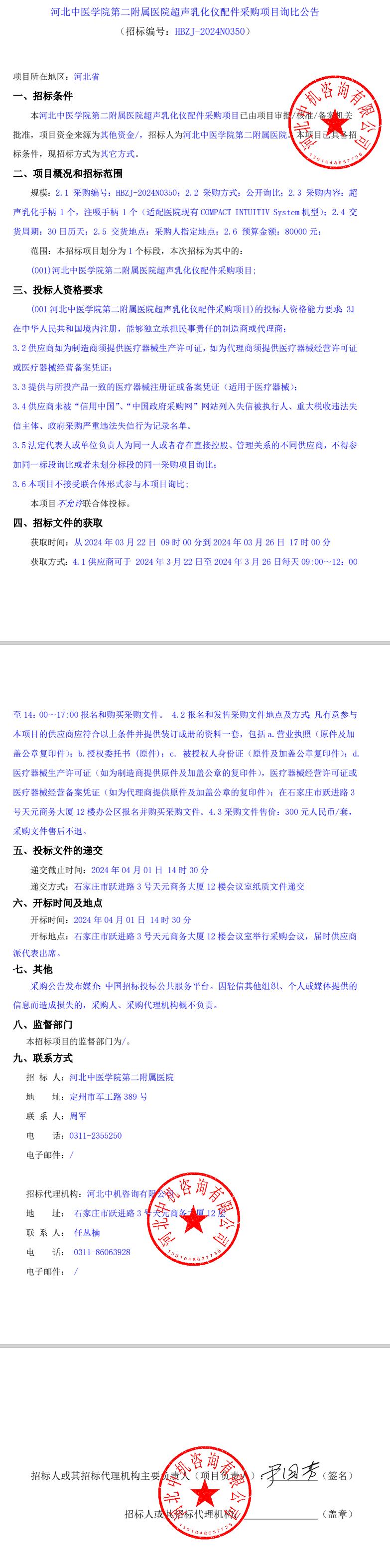超声乳化仪配件采购项目询比公告