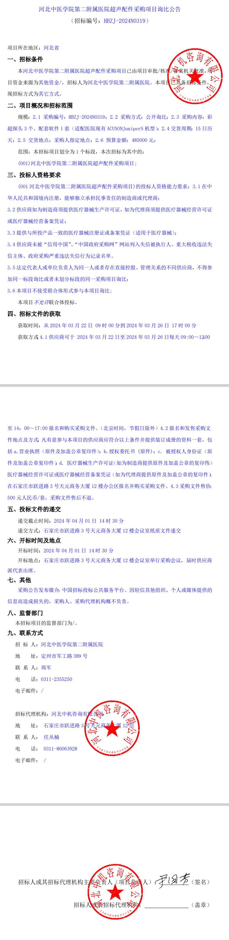 超声配件采购项目询比公告