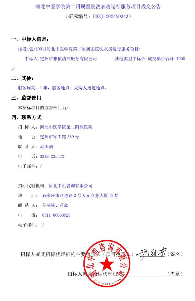 洗衣房运行服务项目成交公告