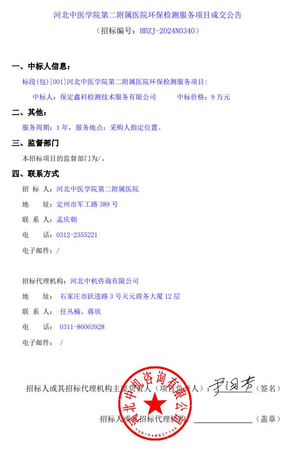 环保检测服务项目成交公告
