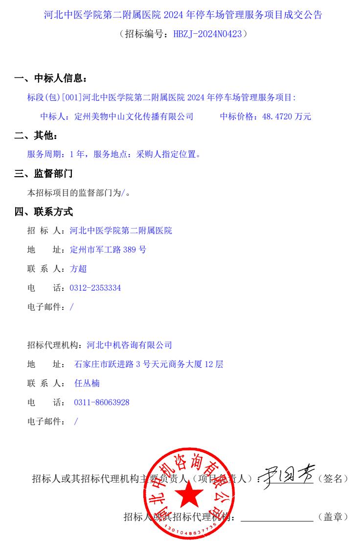 2024年停车场管理服务项目成交公告