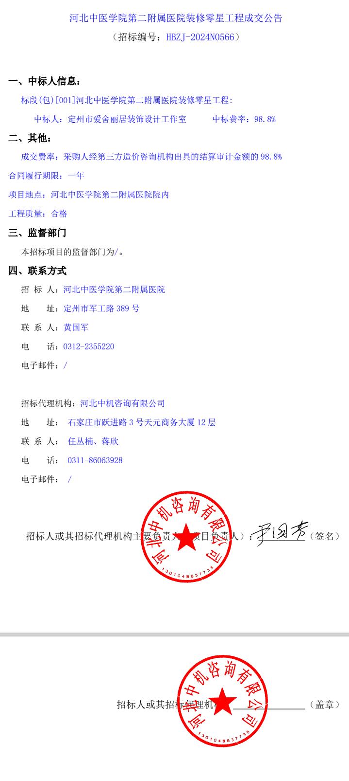装修零星工程成交公告