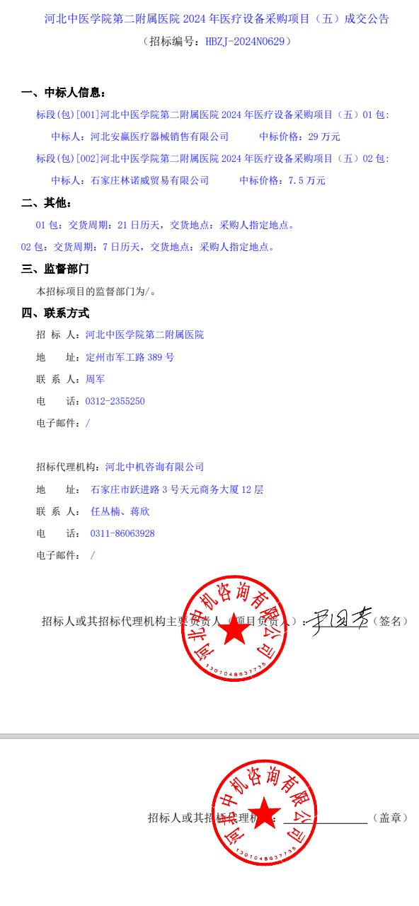 2024年医疗设备采购项目(五)成交公告