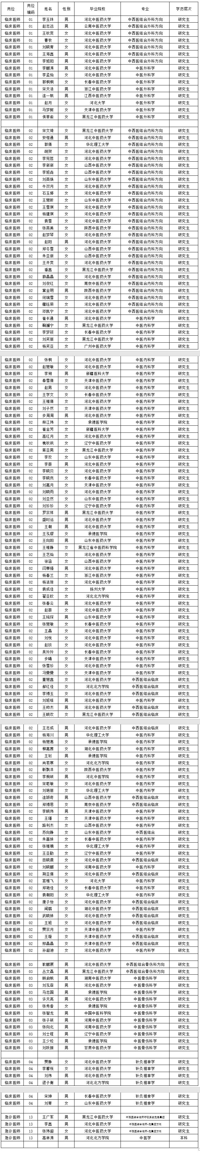 一、临床医师(01-04)、急诊医师(13)岗位