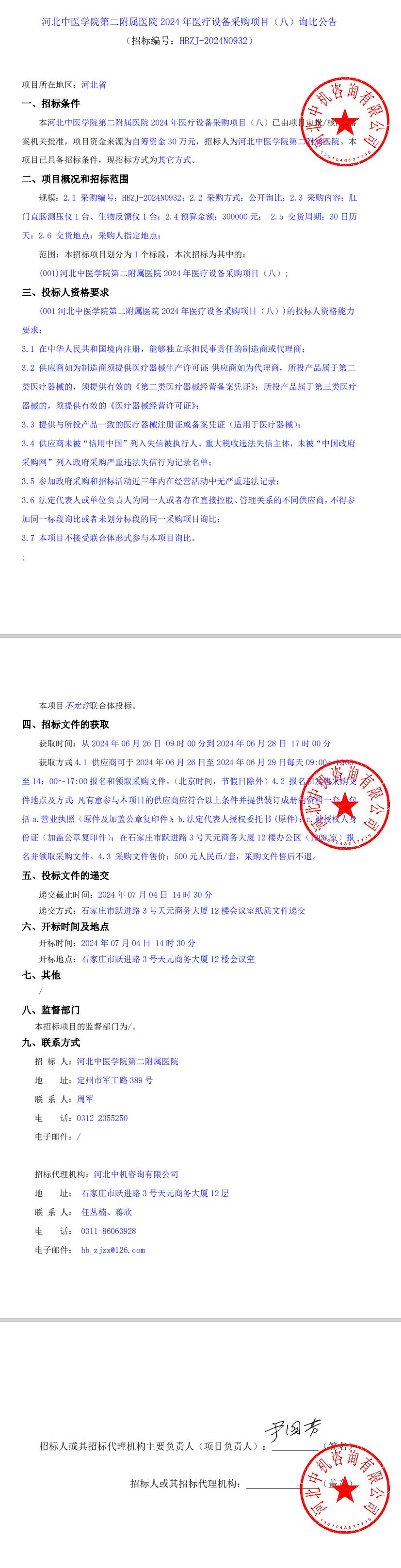 2024年医疗设备采购项目(八)询比公告