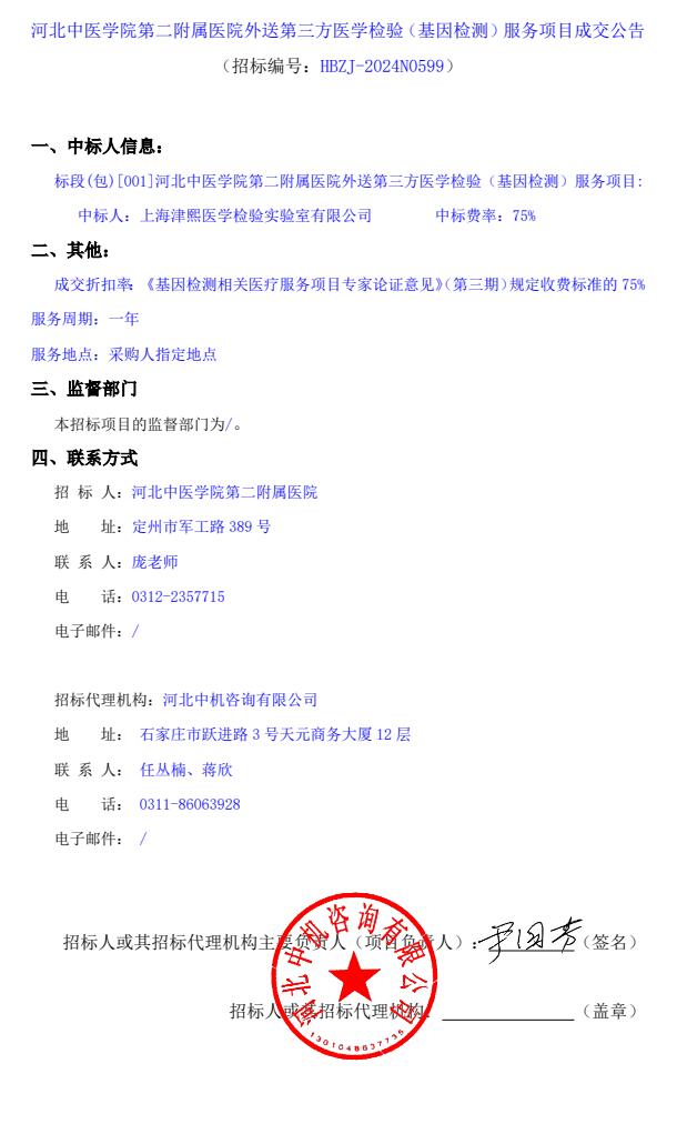 外送第三方医学检验(基因检测)服务项目成交公告