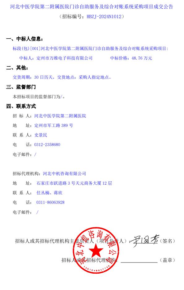 门诊自助服务及综合对帐系统采购项目成交公告