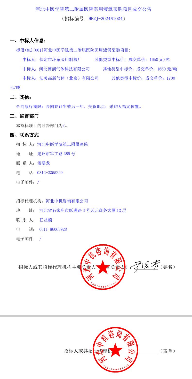 医用液氧采购项目成交公告