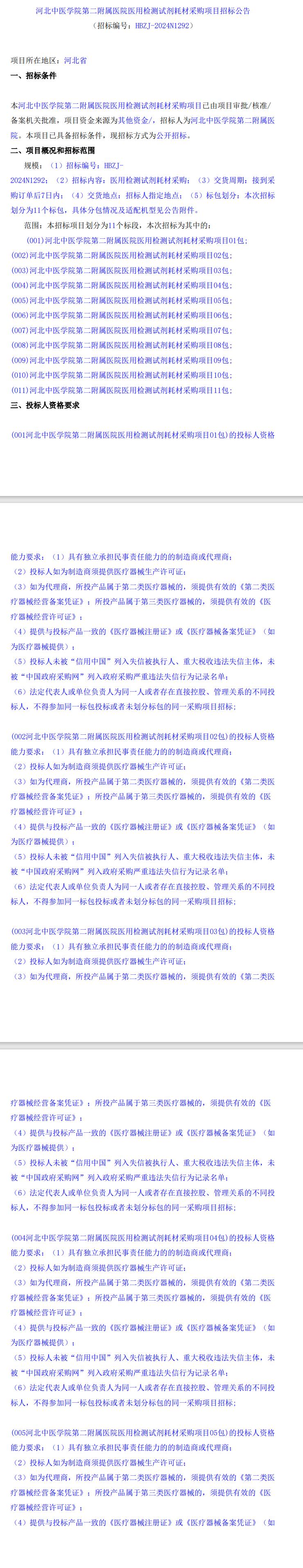 医用检测试剂耗材采购项目招标公告