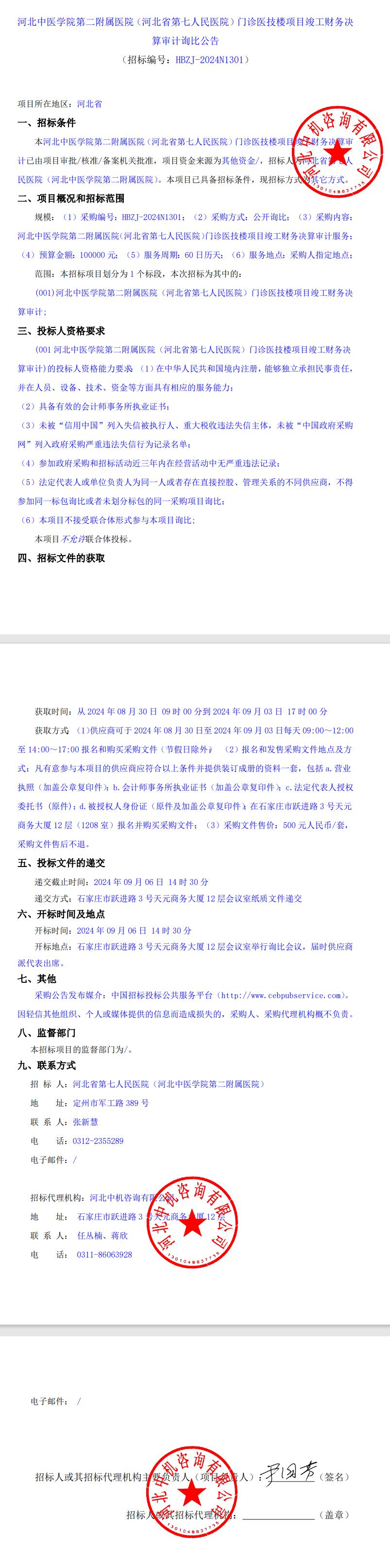 门诊医技楼项目竣工财务决算审计询比公告