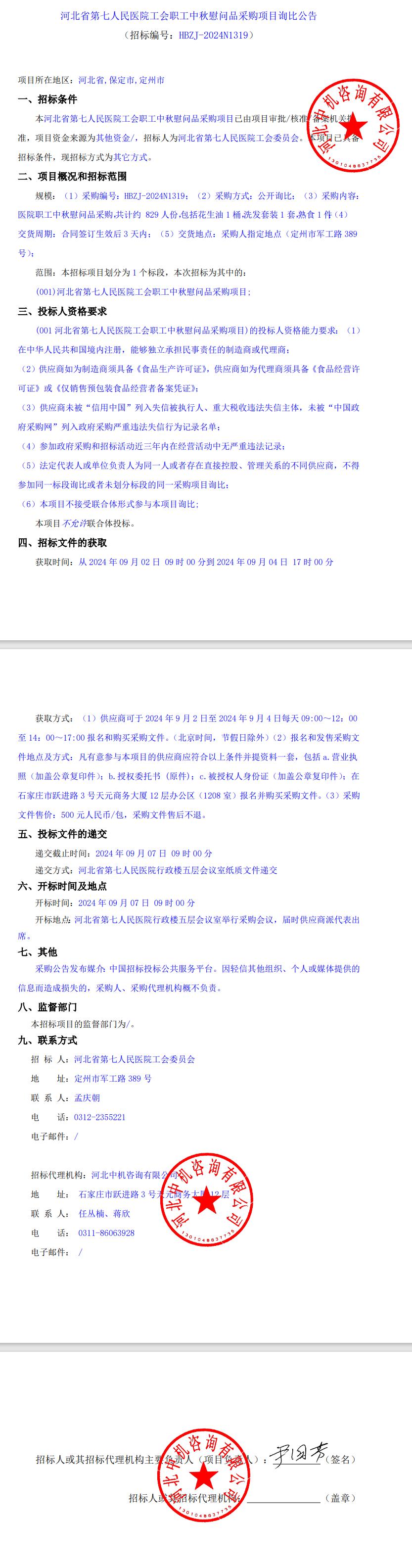 河北省第七人民医院工会职工中秋慰问品采购项目询比公告