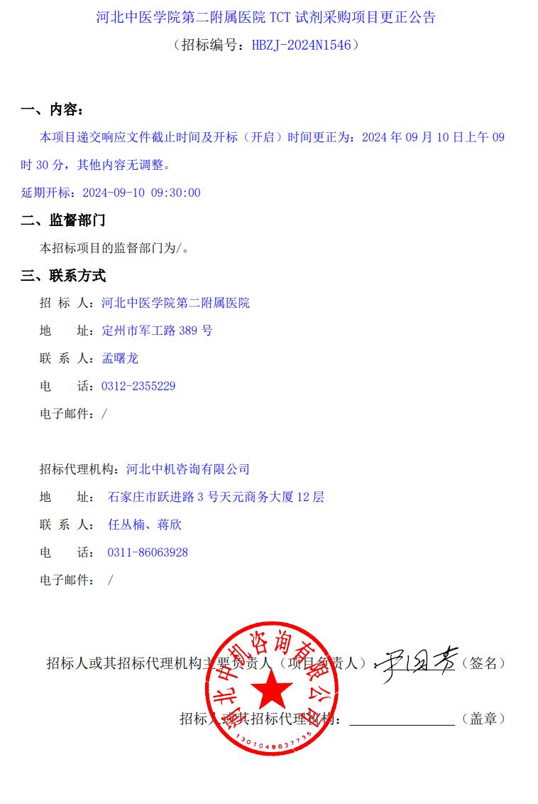 TCT试剂采购项目更正公告