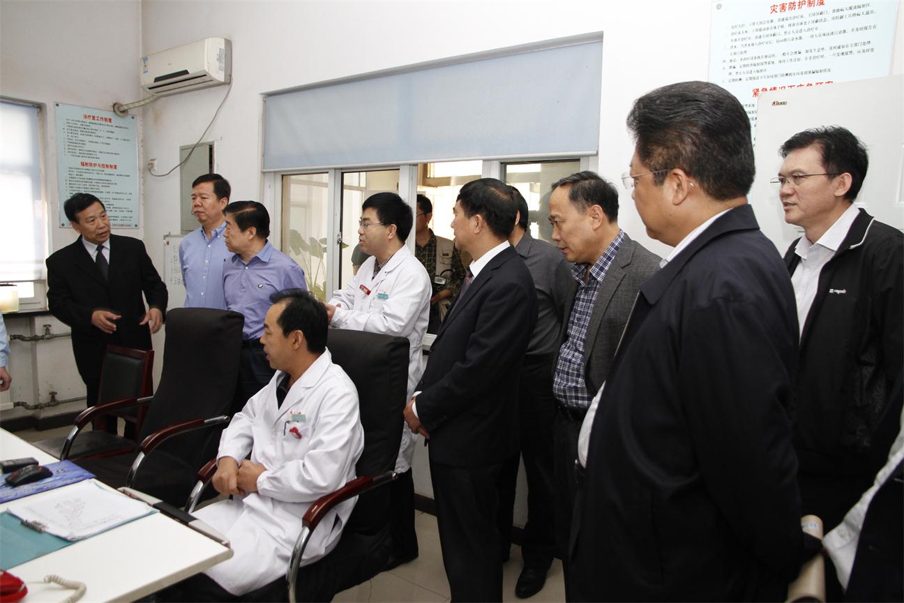 9月26日上午10时许,省卫生计生委党组书记、主任杨新建,党组成员、副主任梁占凯、朱会宾等一行9人在定州市长李军辉、副市长陈业鹏、李献强等相关部门负责人的陪同下到我院就医院整体搬迁事宜进行视察调研。