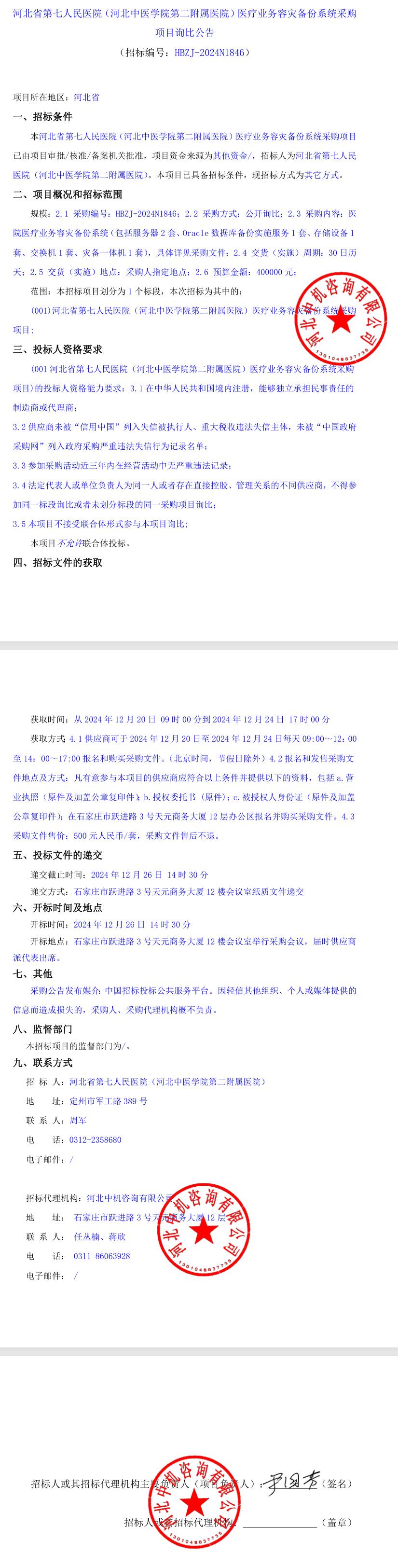 医疗业务容灾备份系统采购项目询比公告