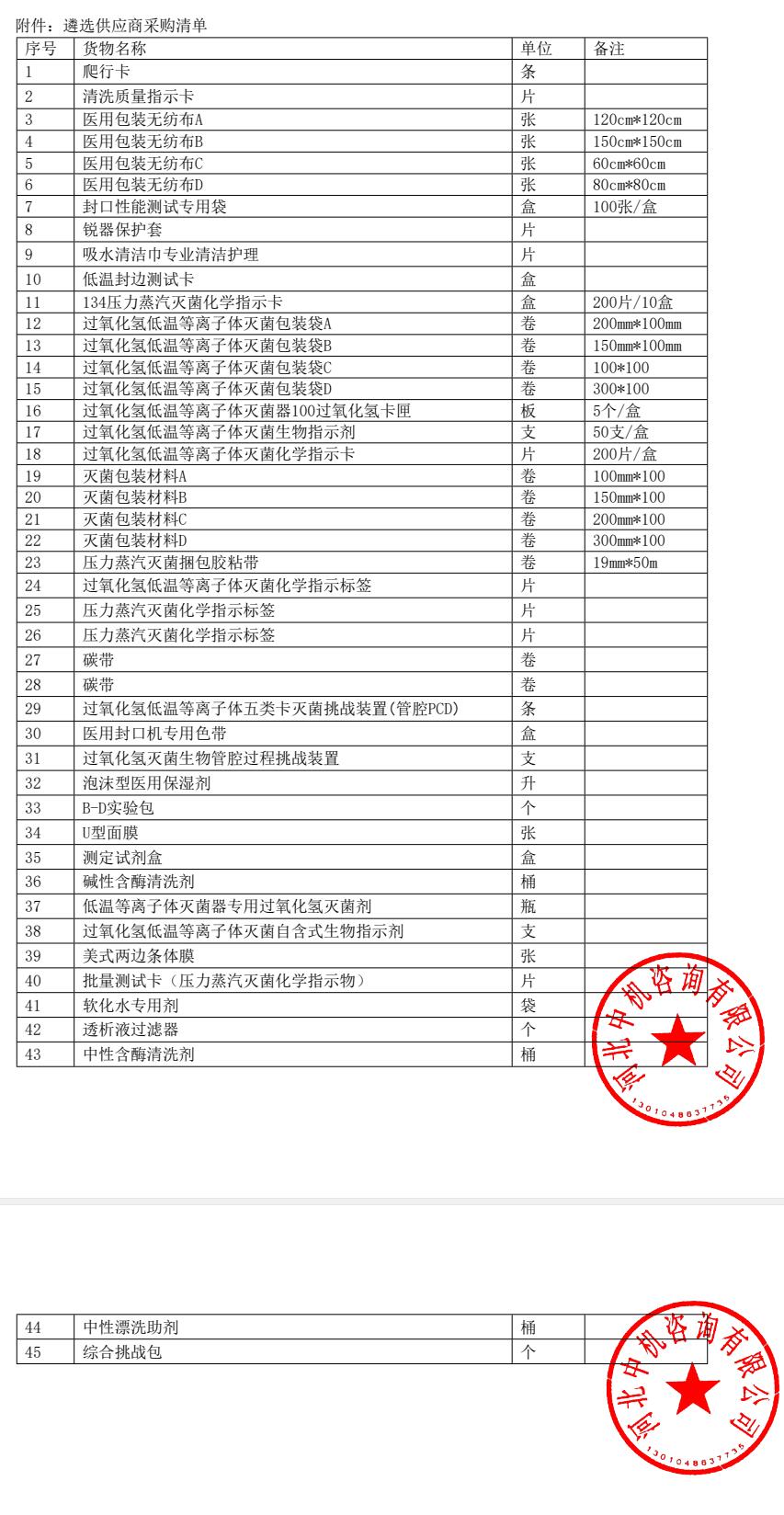 供应室耗材供应商遴选项目遴选公告