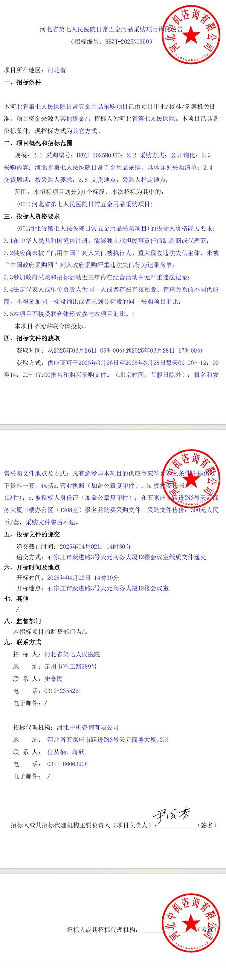 日常五金用品采购项目询比公告