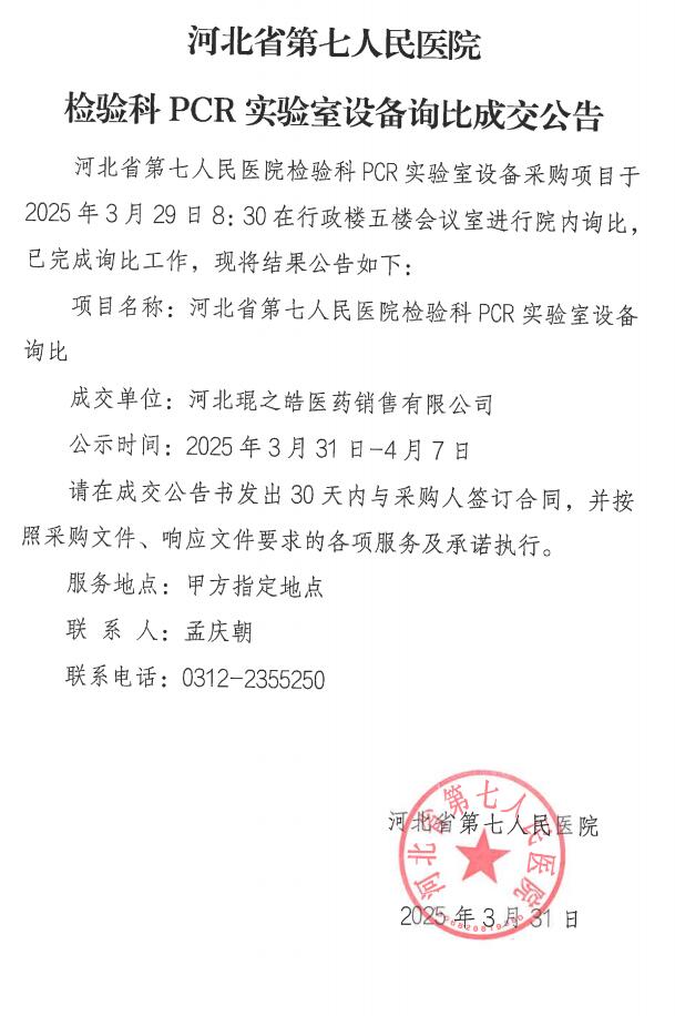检验科PCR实验室设备询比成交公告