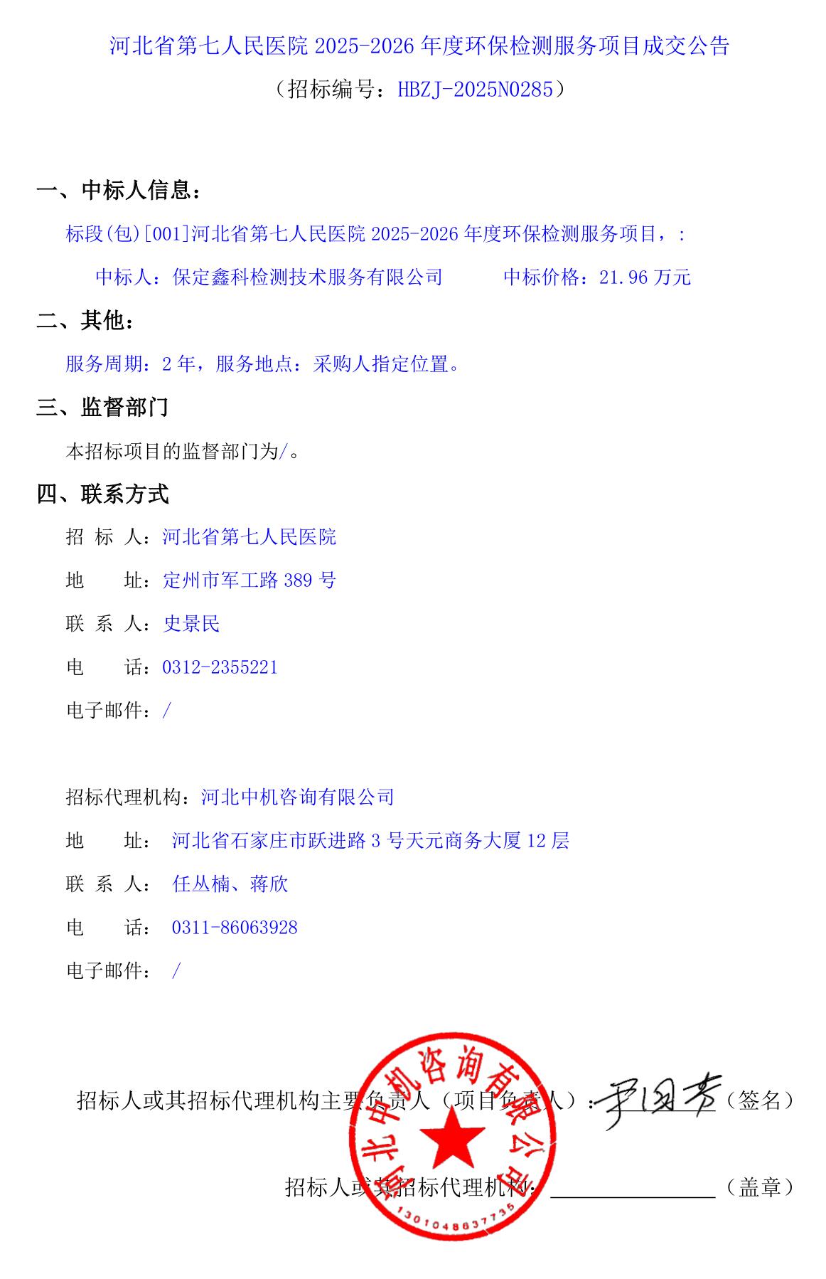 2025-2026年度环保检测服务项目成交公告