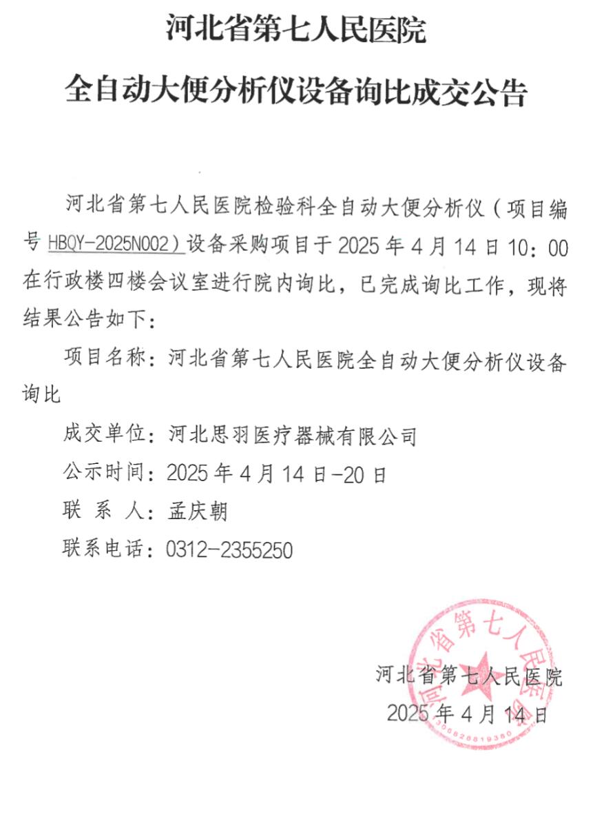 全自动大便分析仪设备询比成交公告