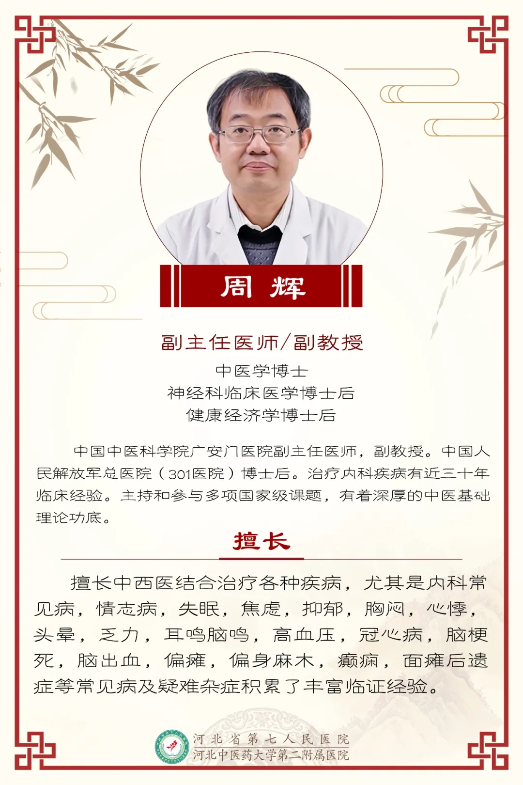 为了让老百姓在家门口就能得到北京专家的优质医疗服务,近日,省七院又聘请中国中医科学院广安门医院副主任医师周辉来院定期坐诊,每月两次,隔周周四在我院门诊三楼名医堂四诊室出诊(本周四3月27日上午出诊),这也是省七院继聘请北京广安门医院黄晓晔教授到院坐诊外,又一位北京中医专家,请有需要的市民咨询就诊。