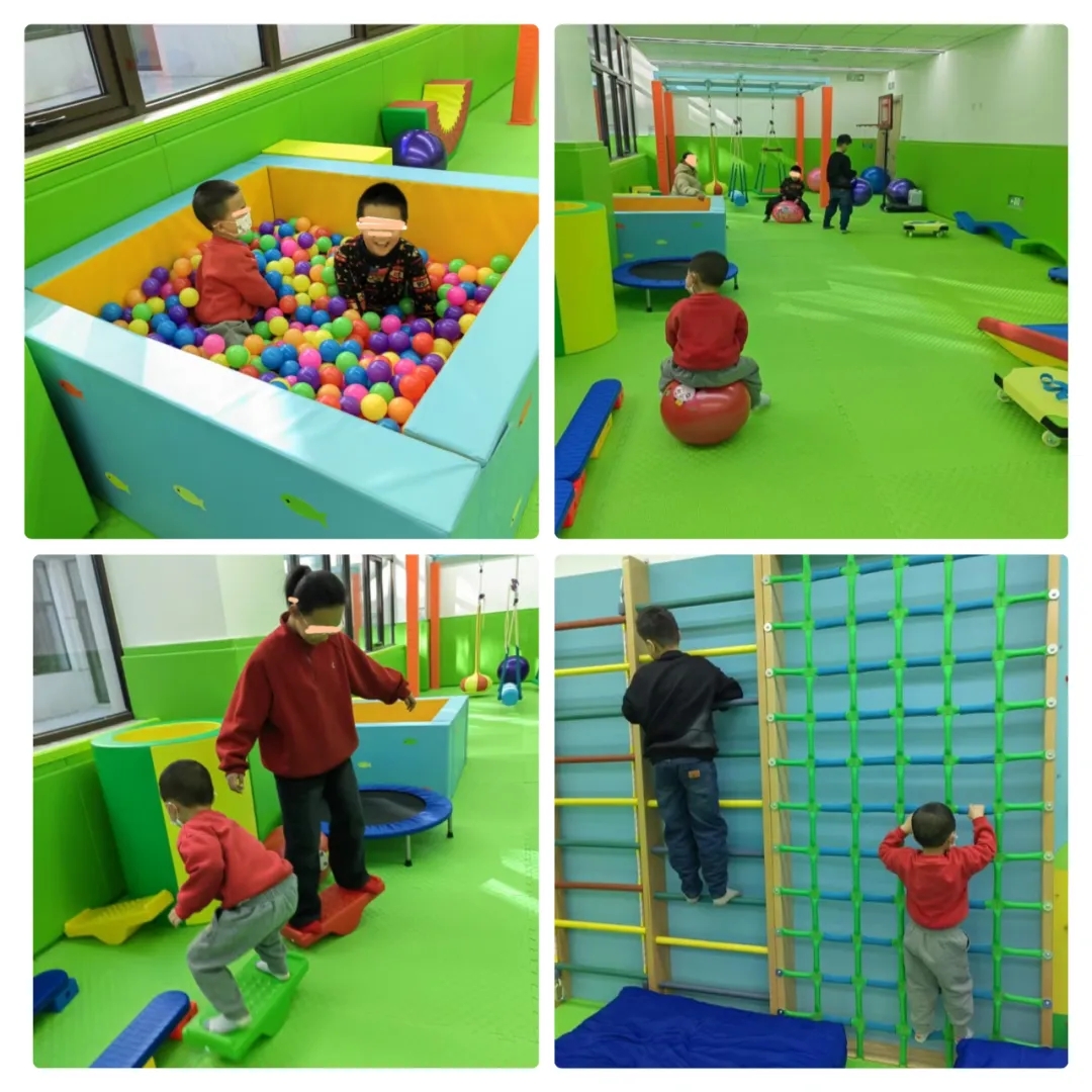我们儿科成立的是高标准感统训练室。感觉统合训练可以提高儿童的大脑组织协调能力、基本活动能力、自控能力、身体协调能力,以及学习和社会交往能力,弥补目前孩子们缺少运动这一不足,有利于培养儿童良好的情绪、兴趣、意志、气质等。