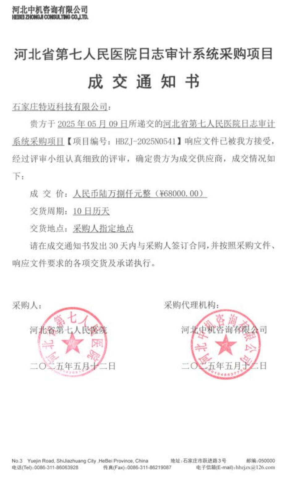 日志审计系统采购项目成交通知书