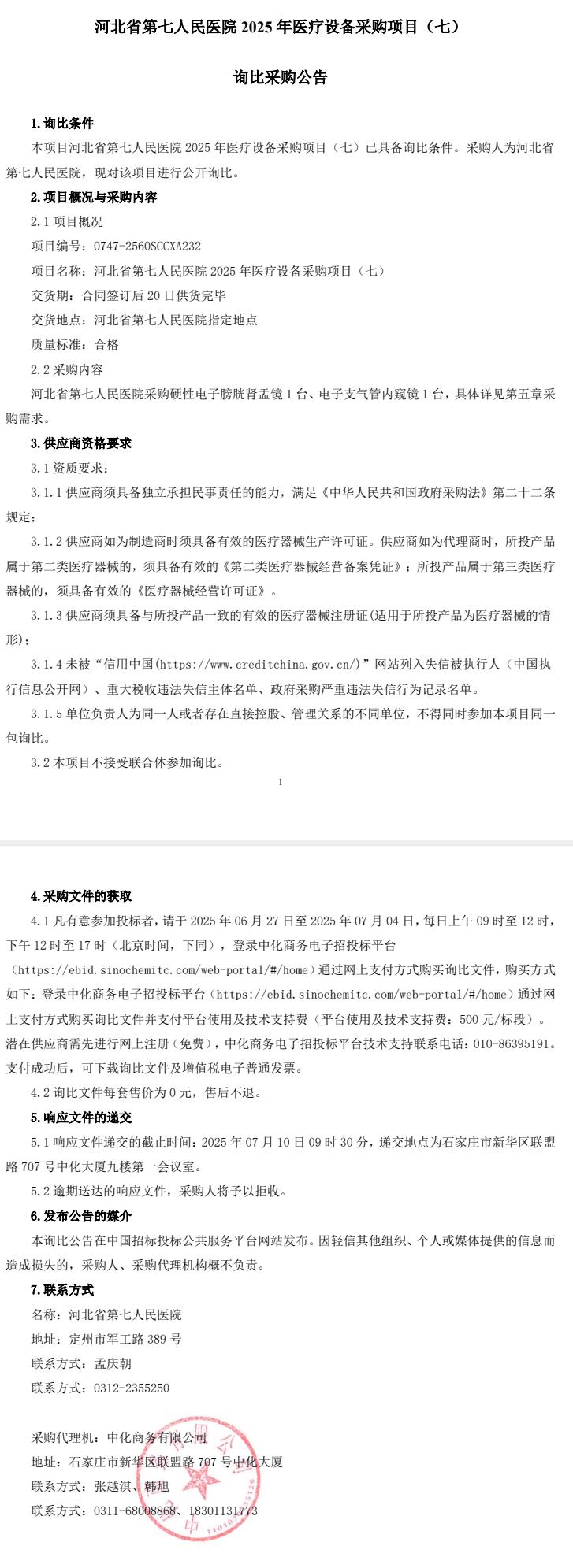 2025年医疗设备采购项目(七)询比采购公告