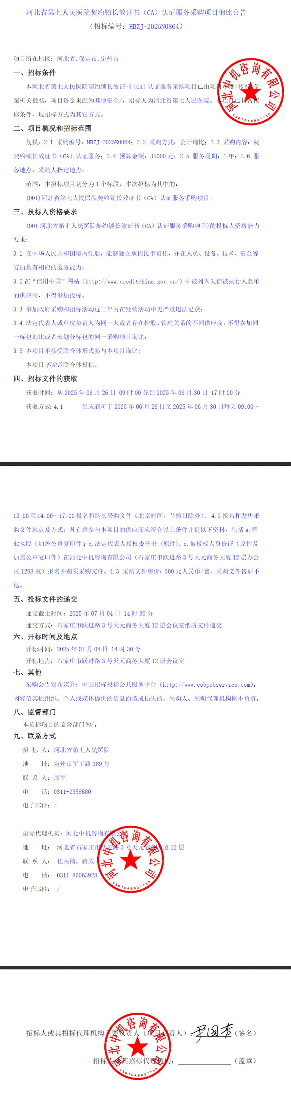 契约锁长效证书(CA)认证服务采购项目询比公告