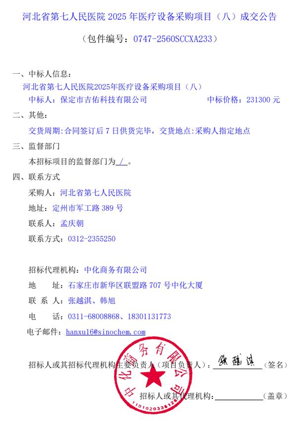 2025年医疗设备采购项目(八)成交公告