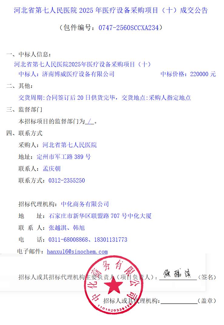 2025年医疗设备采购项目(十)成交公告