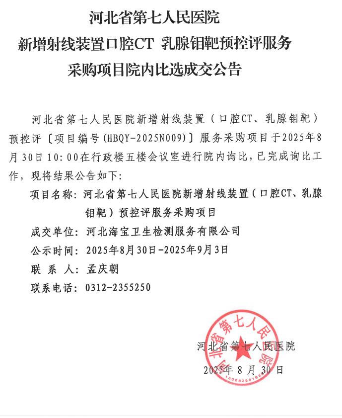 新增射线装置口腔CT乳腺钼靶预控评服务采购项目院内比选成交公告