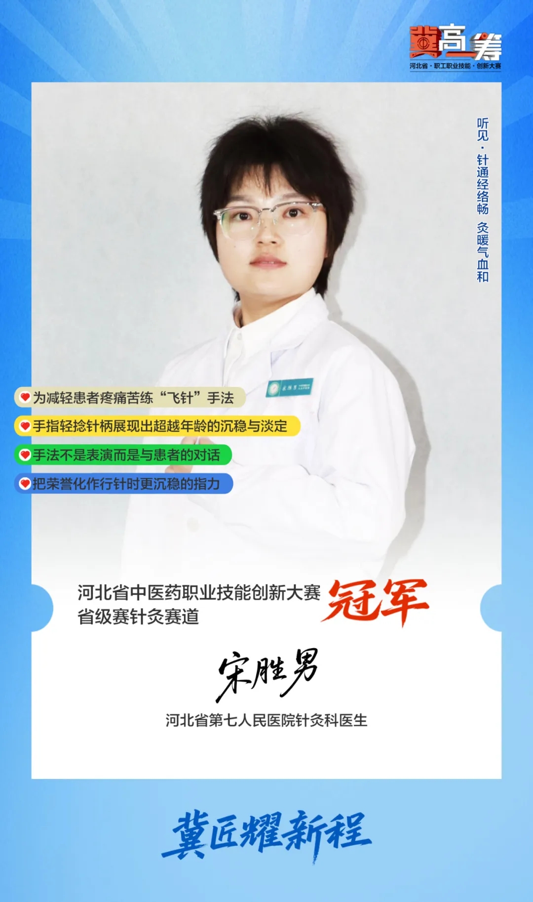ÒøÕëÒÀÈ»ÔÚÖ¸¼äÁ÷ת£¬È´¶àÁ˼¸·Ö¾ÙÖØÈôÇáµÄ´ÓÈÝ£»¹Ú¾ü½±±±»ËýÊÕ½øÕïÊÒ³éÌ룬Èü³¡ÉÏ´ãÁ¶³öµÄ×ÔÐÅÈÚÈëÁËÿһ¸öÖÎÁÆË²¼ä¡£×Ô´Ó´ú±íºÓ±±Ê¡µÚÆßÈËÃñÒ½ÔºÕªµÃ¡¶“¼½”¸ßÒ»³ï¡·ºÓ±±Ê¡ÖÐÒ½Ò©Ö°Òµ¼¼ÄÜ´´Ð´óÈüÊ¡¼¶ÈüÕë¾ÄÈüµÀ¹ð¹Úºó£¬ÕÒËÎʤÄÐÔúÕëµÄ»¼ÕßÃ÷ÏÔÔö¶à£¬¶øËýËùÔÚµÄÕë¾Ä¿Æ£¬Ò²±ÈÒÔÍù¸üƵ·±µØ²ÎÓëµ½Ò½Ôº¿ç¿ÆÊÒÁªºÏ»áÕïÖС£