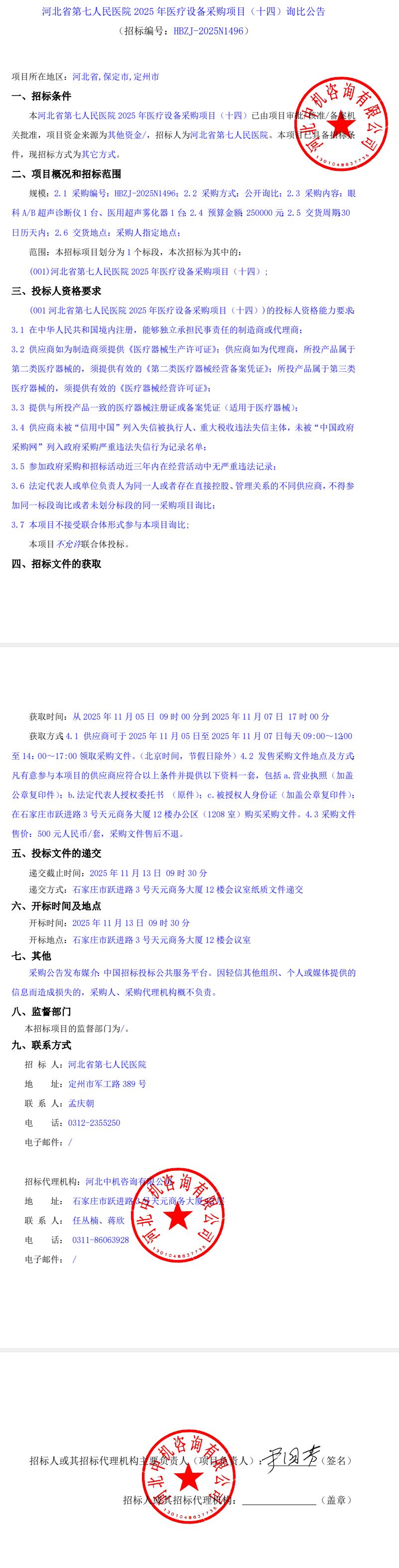 2025年医疗设备采购项目(十四)询比公告