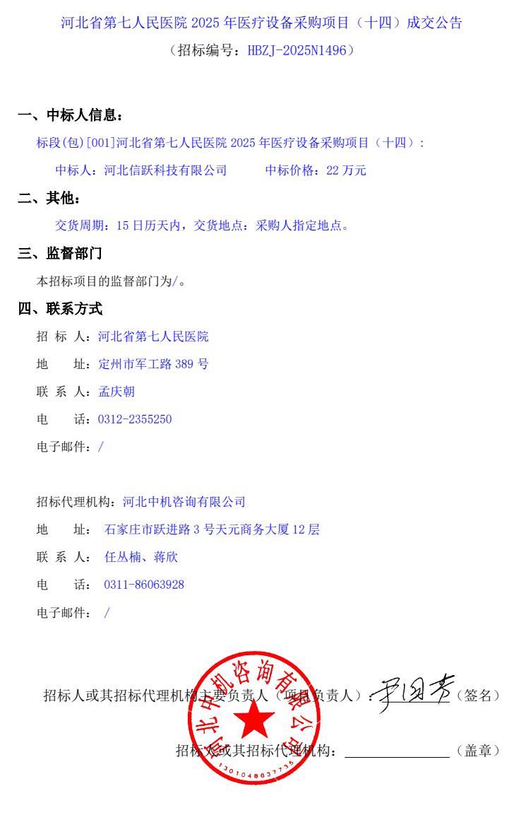 2025年医疗设备采购项目(十四)成交公告