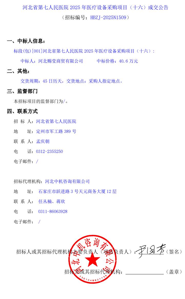 2025年医疗设备采购项目(十六)成交公告