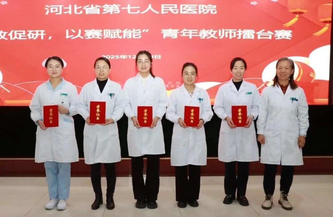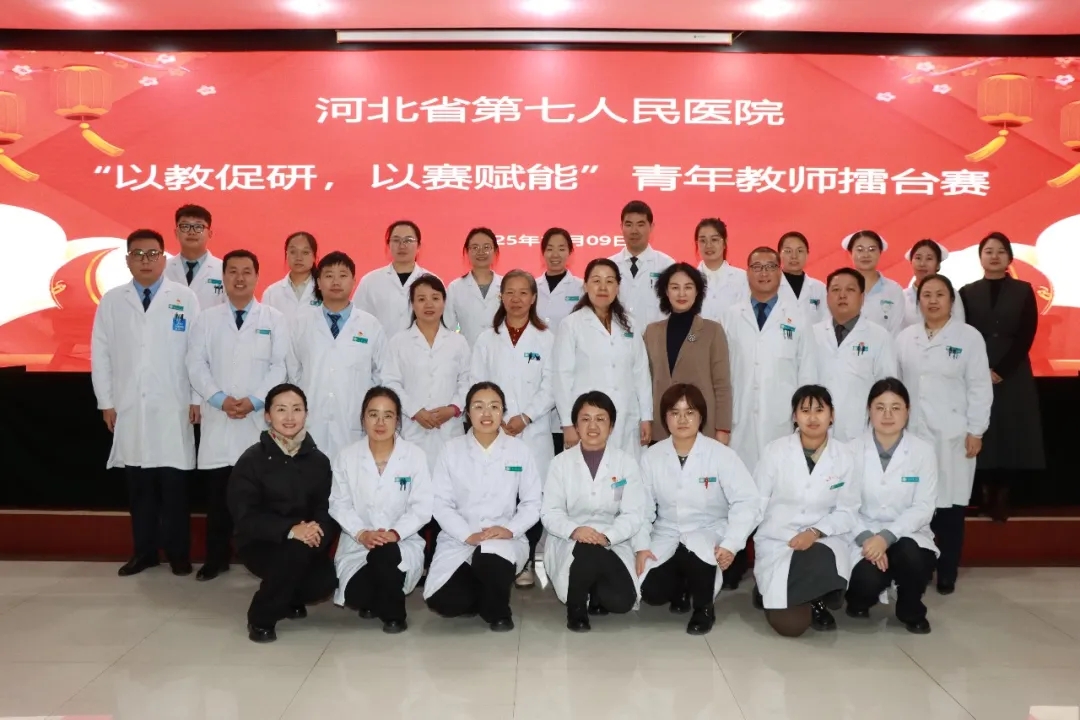 为搭建青年教师教学切磋、互学共进的优质平台,发掘教学骨干力量、蓄力更高层级教学赛事,12月9日,河北省第七人民医院“以教促研,以赛赋能”青年教师擂台赛在院内精彩举办。本次比赛设置教学创新设计与教学演示两大环节,其中教学创新设计占总成绩的30%,教学演示占总成绩的70%,7位专业评委全程聚焦两大环节精准打分,22位青年教师同台竞技,全方位展现教学硬实力。.jpg)