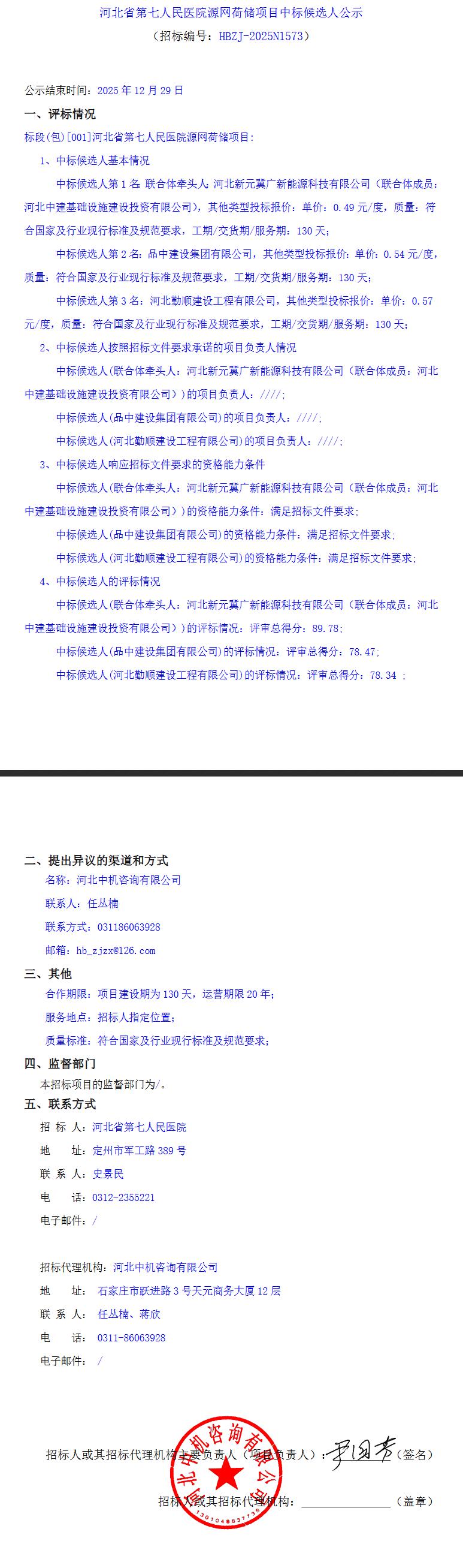 源网荷储项目中标候选人公示