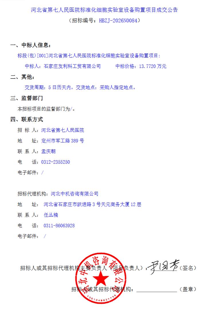 标准化细胞实验室设备购置项目成交公告