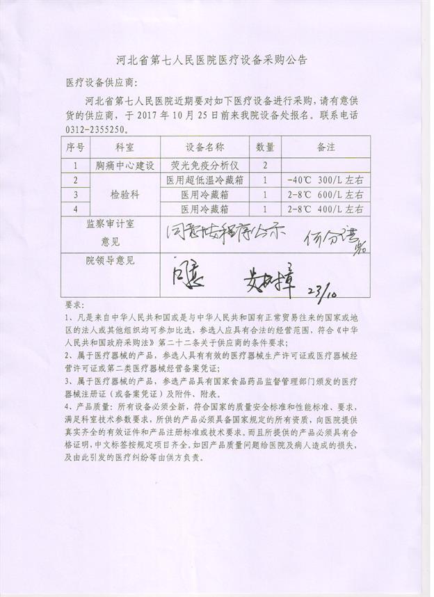 河北省第七人民医院医疗设备采购公告