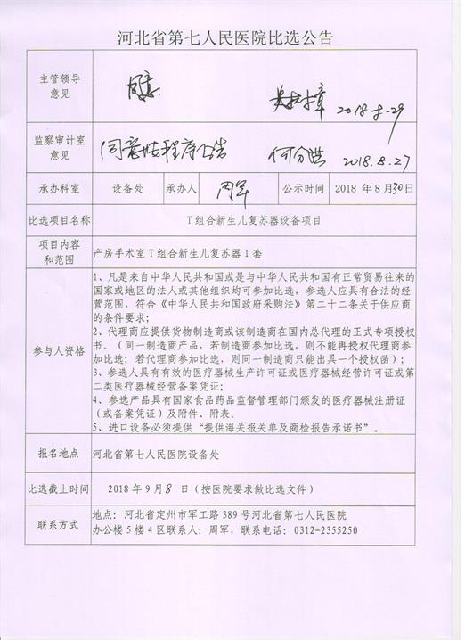 产房手术室T组合新生儿复苏器1套比选公告
